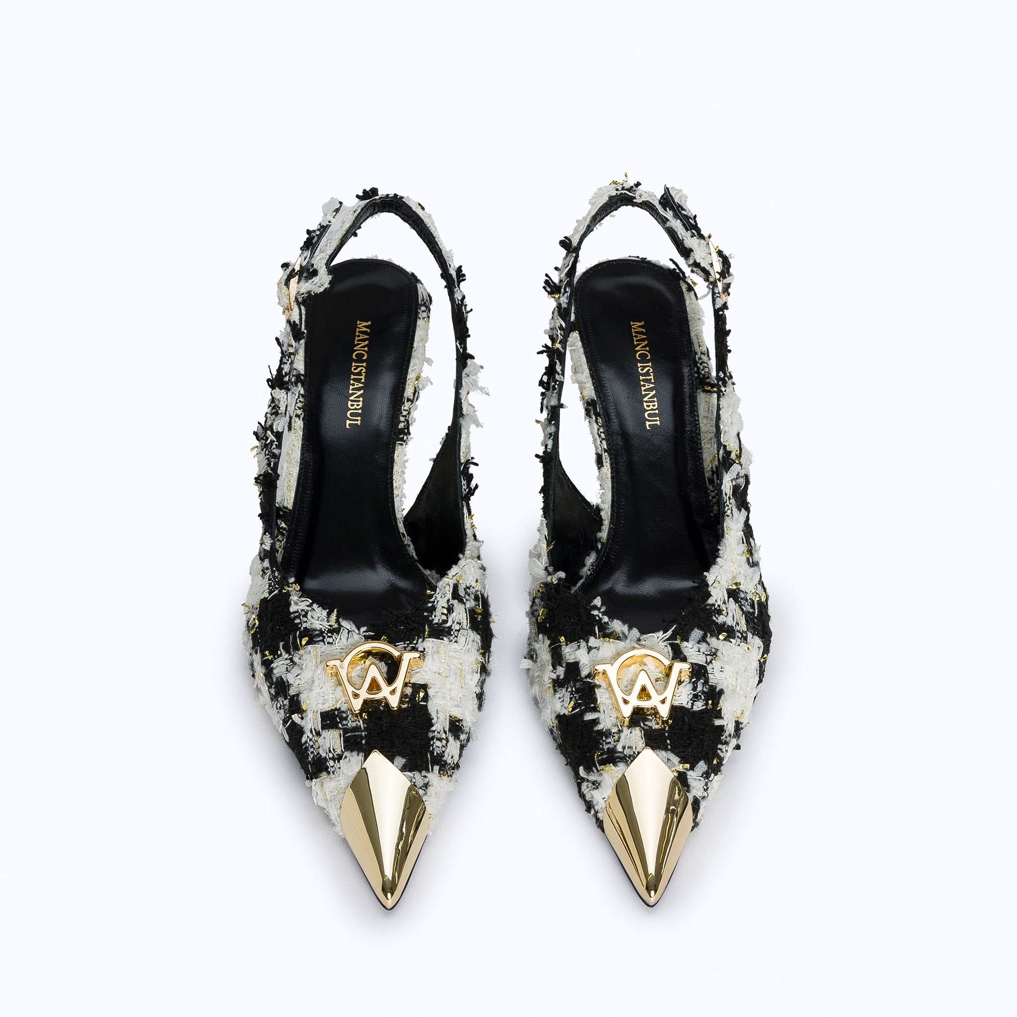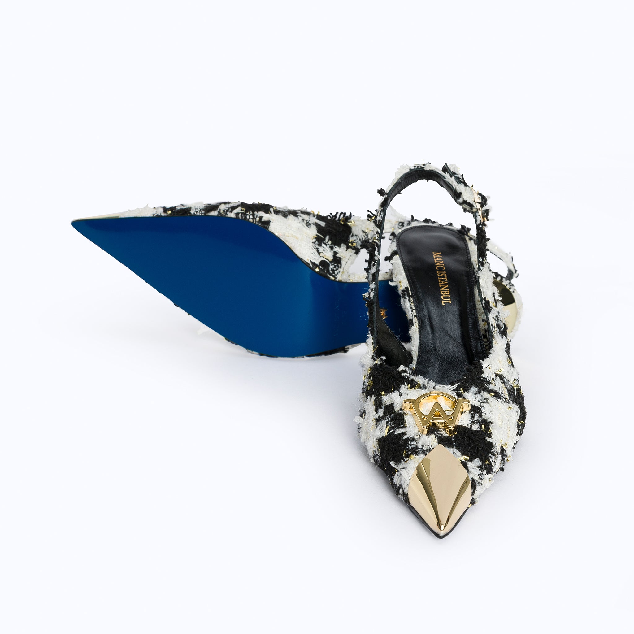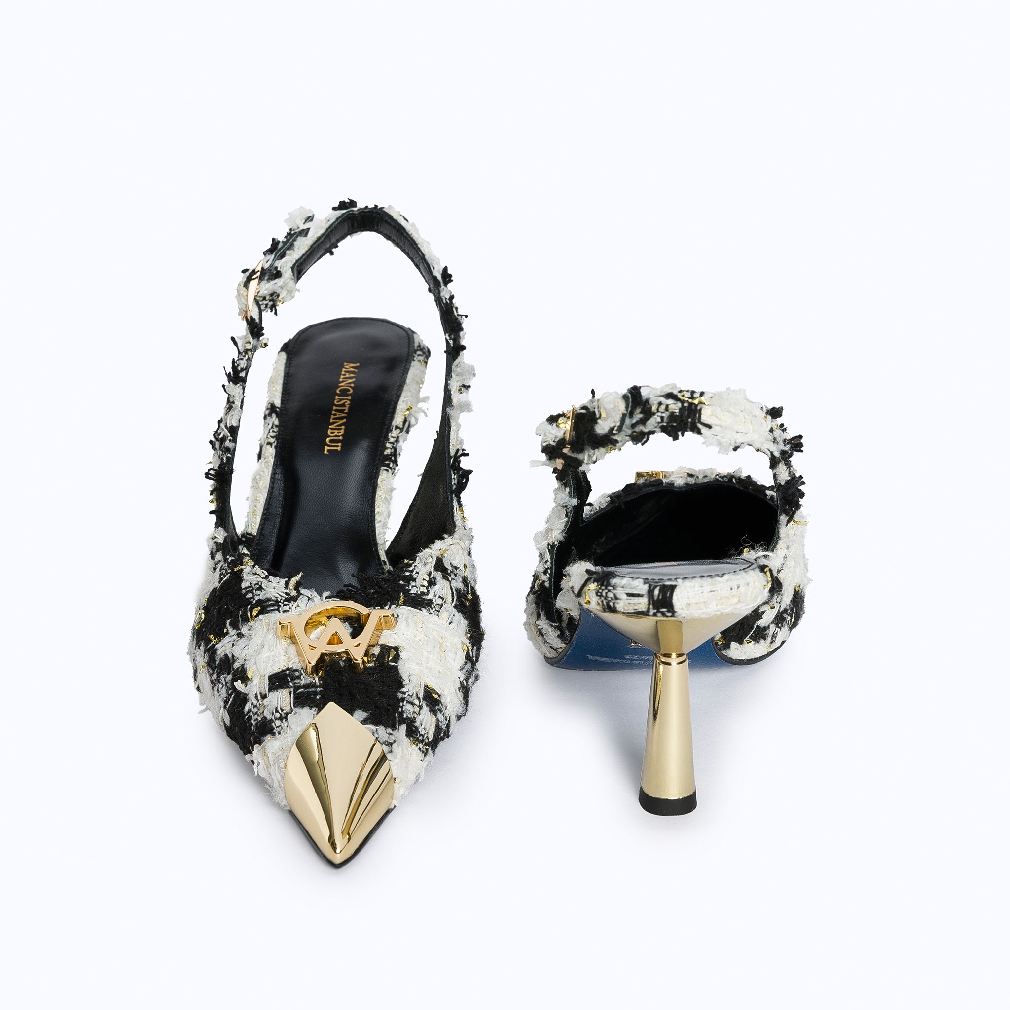 A modern muse with a vintage soul. FELICITY KITTEN is our slingback heel designed to turn heads. With a sculpted kitten heel, pointed toe, and signature gold-tone MANC emblem, this shoe blends retro flair with modern polish